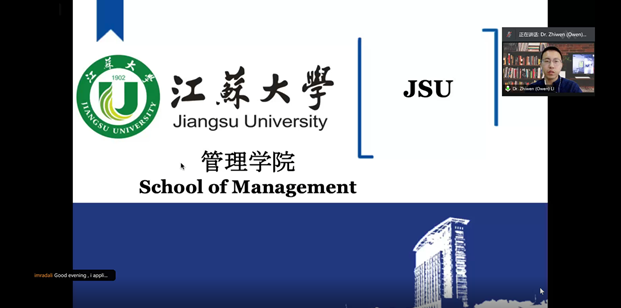 Jiangsu University organized an online education fair for September 2021 admissions in 18th May. This interaction was themed “Program in Management and Economics & Silk Road Scholarship”. The program had representatives from various departments. School of Management was represented by Dr. Li Zhiwen. Overseas Education College (OEC) admission team were also present to answer questions related to general admission and other scholarships for all international students. There were over one hundred and fifty prospective students who attended this online program. Dr. Li Zhiwen gave a wonderful presentation about the School of Management. He spoke about the experienced teaching and research staff with great international exposures and the impeccable administrative staff that constantly contribute in raising the standard and status of the department and the university in general. He highlighted on the various programs in the School of Management and the study duration. Furthermore, Dr. Li Zhiwen highlighted on the scholarships available at the School of Management, the levels of scholarships, to whom and how they’re awarded. He also touched on internship opportunities for international students at the School of Management and career prospects after graduation by making inference to many past students. Before he ended his speech, he introduced Mr. Francis Tang Dabuo who is the current Postgraduate (PG) student leader for the School of Management. Francis shared his experience as a student and as a PG leader. He encouraged prospective applicants who want to develop skills that are necessary in the real-world jobs, and those interested in research, to enroll since the school has a diverse, friendly and hardworking family that dabbles in a wide range of research interests and possesses as a large arsenal of tools that they can benefit from. Prospective applicants had the opportunity to ask several questions. The conclusion remarks from prospective applicants indicated their desire and eagerness to seize the opportunity to develop their career prospects by enrolling in our prestigious and leading programs.