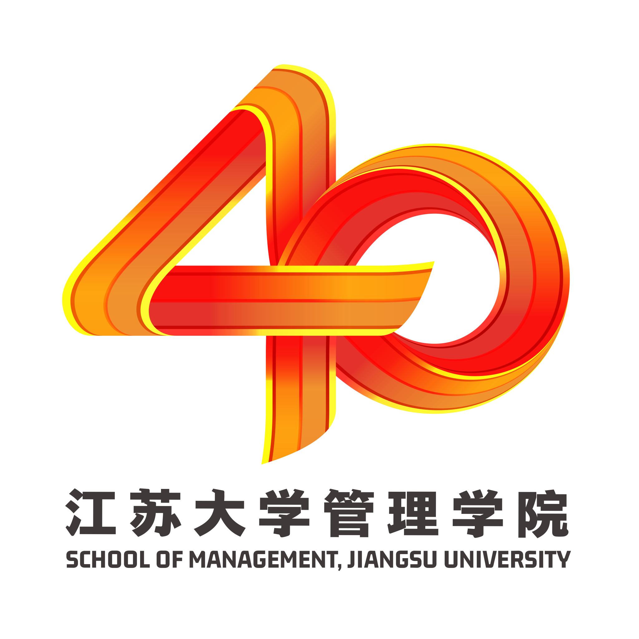 红色丝带寄予信念的连结,将绵长的红色丝带作为图标设计的基本载体,绵长环绕的变化方式组成文字“40”样式,庆祝学院40周岁生日。